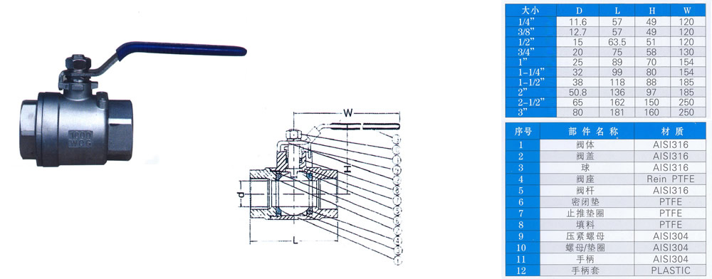 三片式内螺纹 承插焊和对焊式不锈钢球阀